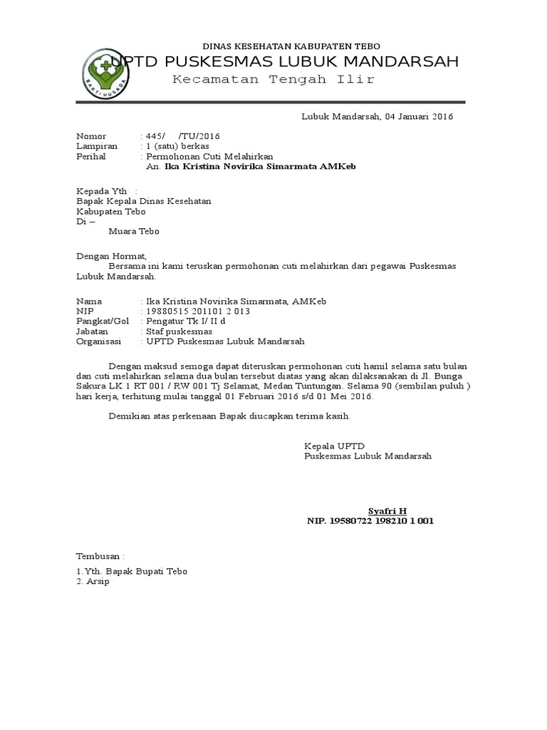 16 Contoh Surat Cuti Melahirkan Pns Guru Dan Pegawai Contoh Surat