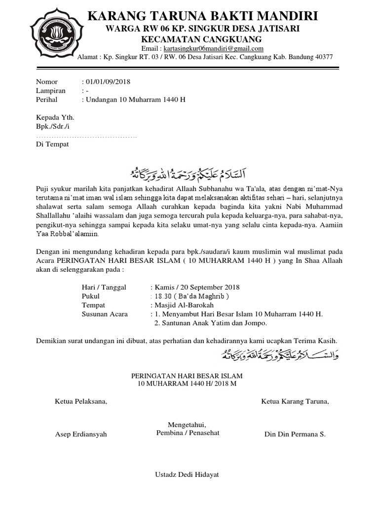 Contoh Surat Permohonan Bantuan Infak Anak Yatim Pasaman 4rt