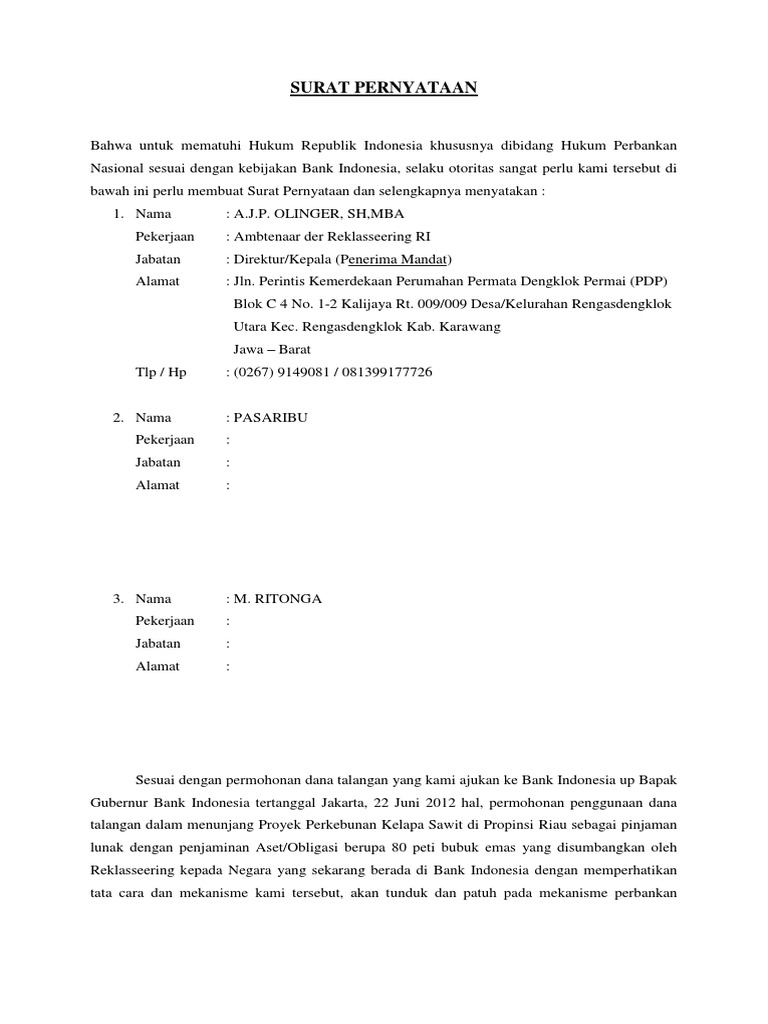 Contoh Surat Pernyataan