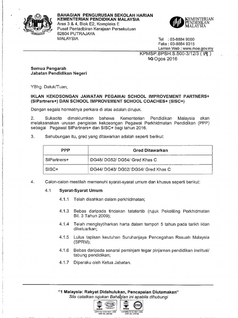 Surat Iklan Kekosongan Jawatan Pegawai Sip Dan Sisc