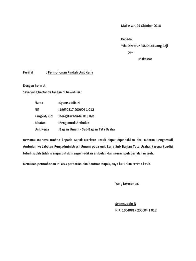 Contoh Surat Permohonan Pindah Bagian Kerja Contoh Seputar Surat