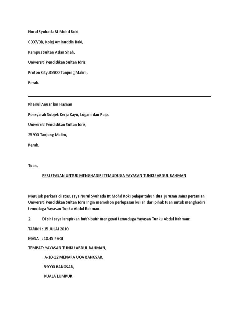 Surat Rasmi Pengecualian Kuliah Surat Dd