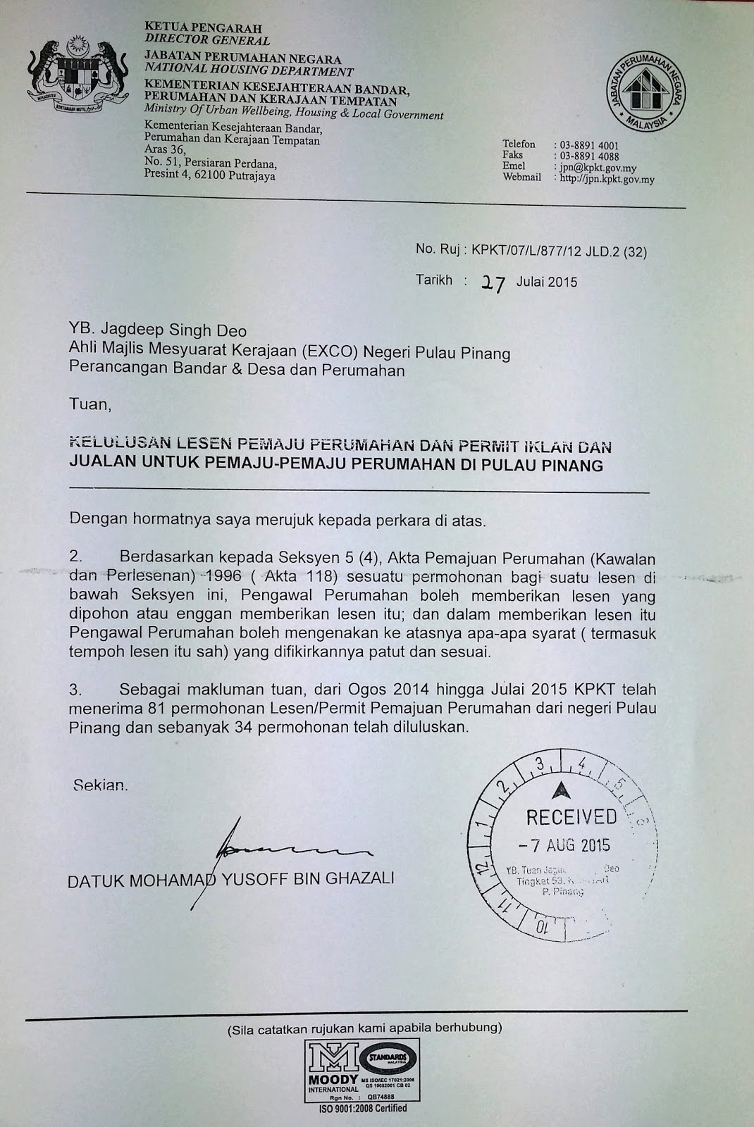 Surat Rasmi Permohonan Ditolak Jalan Kutai A