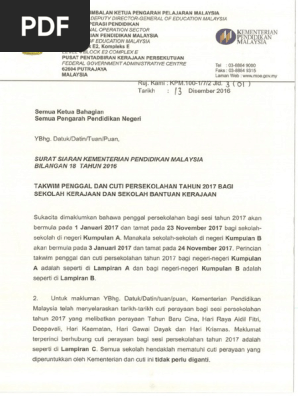 Surat Siaran Kpm Takwim Penggal Cuti Sekolah 2017