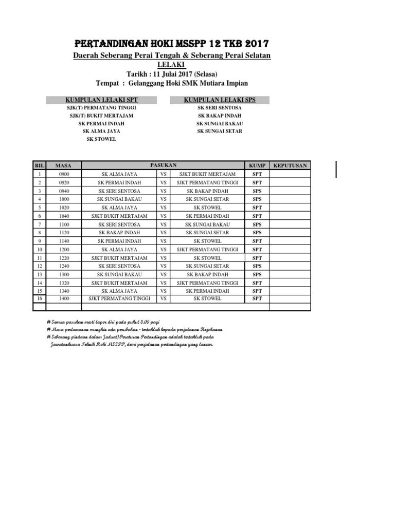 Pertandingan Hoki Msspp 12 Tkb 2017 Daerah Seberang Perai Tengah Seberang Perai Selatan