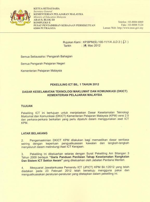 Pekeliling Ict Bil 1 Tahun 2009 Dasar Keselamatan Ict