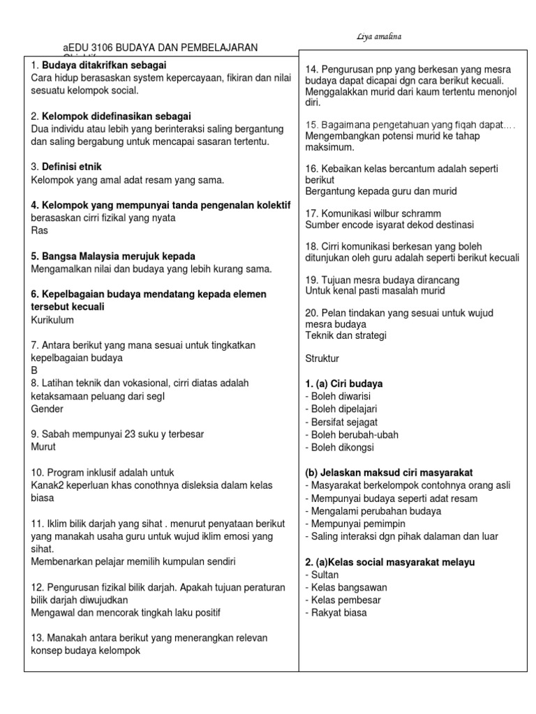 Doc Hubungan Etnik Nota Padat Mampat Docx Hareez Syahmi Hussaini Academia Edu