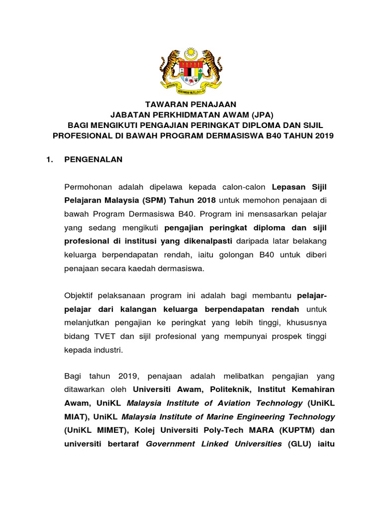 Program Dermasiswa B40 Jabatan Perkhidmatan Awam Jpa Tahun 2019 Mypendidikanmalaysia Com