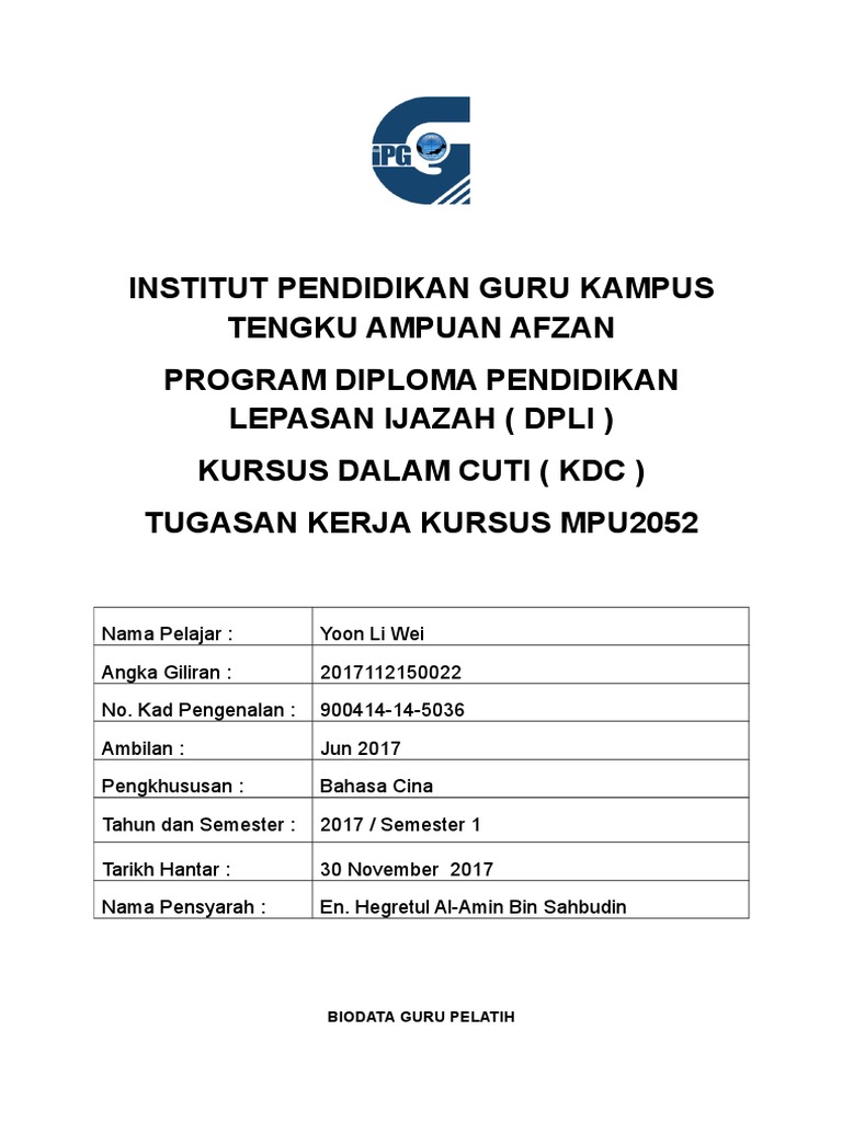 Kerja Kursus Edup2053 Pdpli Jun 17