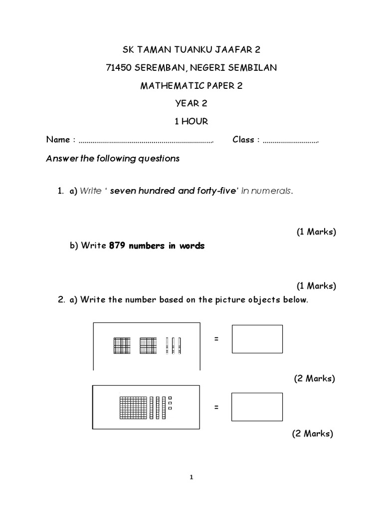 Peperiksaan Akhir Tahun Mathematics Year 2 Paper 1 Mathematics Maths Exam Exam Papers