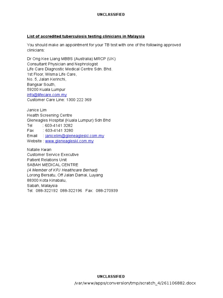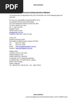 Approved Tb Test Clinics Malaysia Health Care Public Health Besplatnaya 30 Dnevnaya Probnaya Versiya Scribd