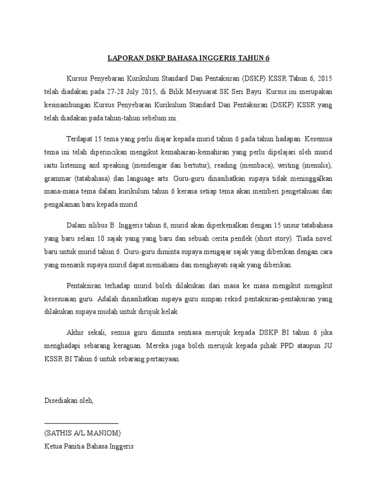 Laporan Dskp Bahasa Inggeris Tahun 6